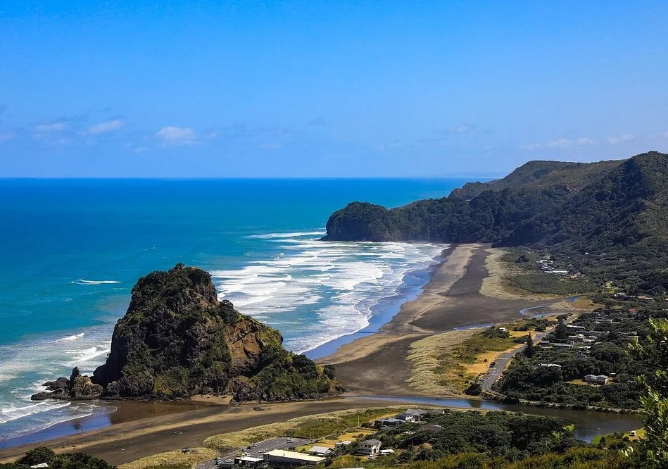 Piha, near Auckland – describe surf, scenery, nearby attractions